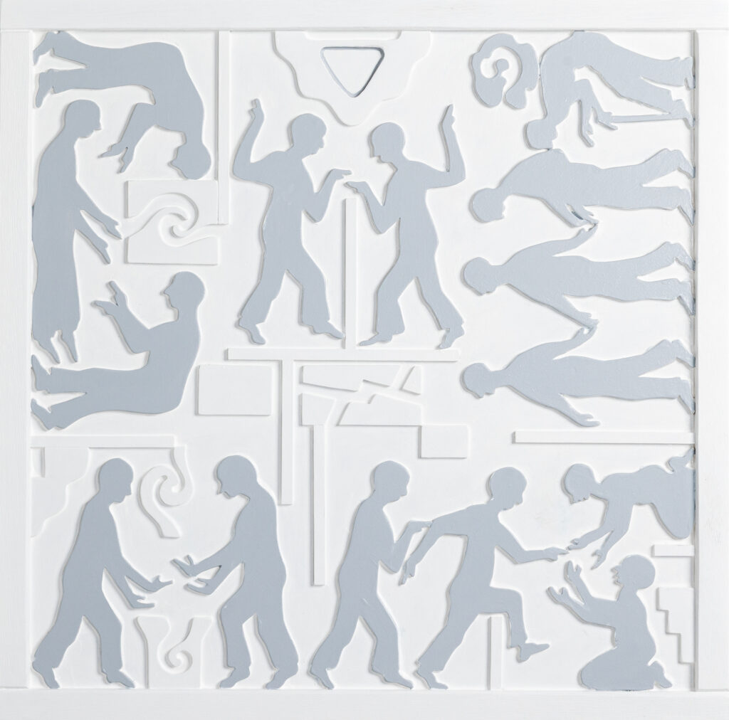 Erik van ’t Hoff exposeert met afbeeldingen, uitgezaagd, witgeverfd, getekend door schaduwlijnen. U ziet niet alleen strakke vormen, maar ook de mens, digitaal gebonden en spiritueel vrij. Laat u verrassen door de begeleidende teksten.