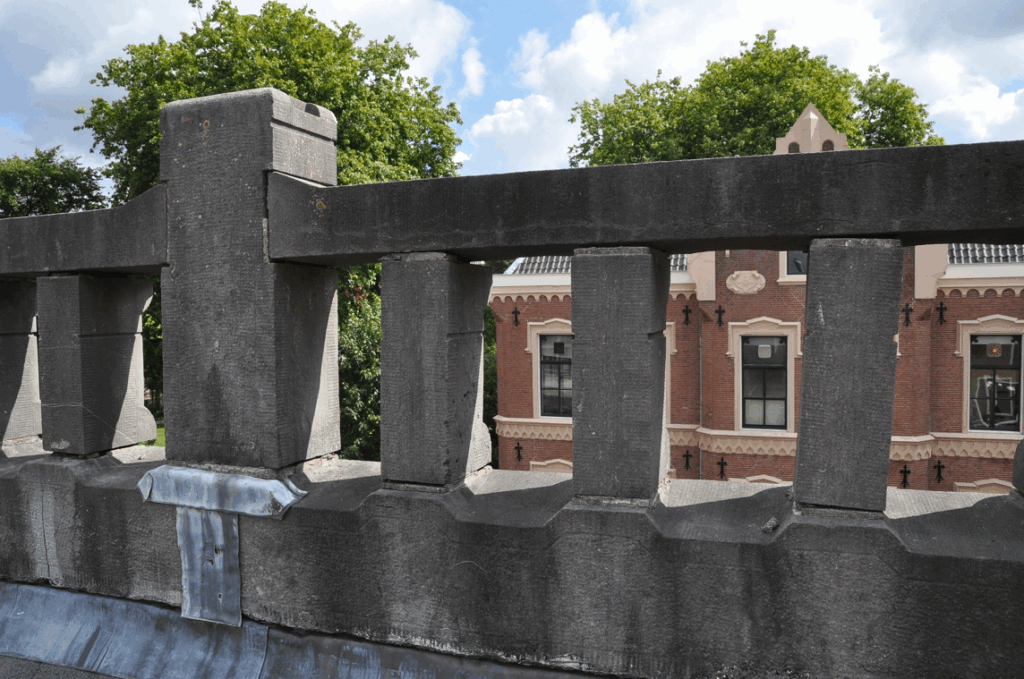 Ongeveer vijf jaar geleden werd al duidelijk dat de kenmerkende balustrade breuken en scheuren vertoonde. Onduidelijk was wat de oorzaak was. Afgelopen voorjaar is dat nauwkeurig onderzocht. Duidelijk is inmiddels dat de stalen dakbalken aan de uiteinden verroest en daardoor uitgezet zijn.